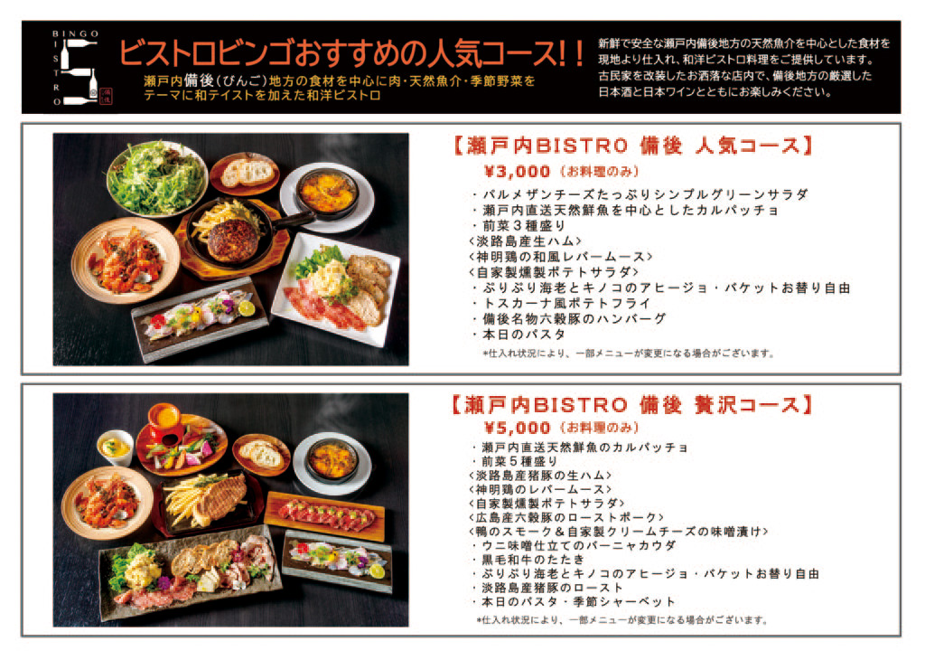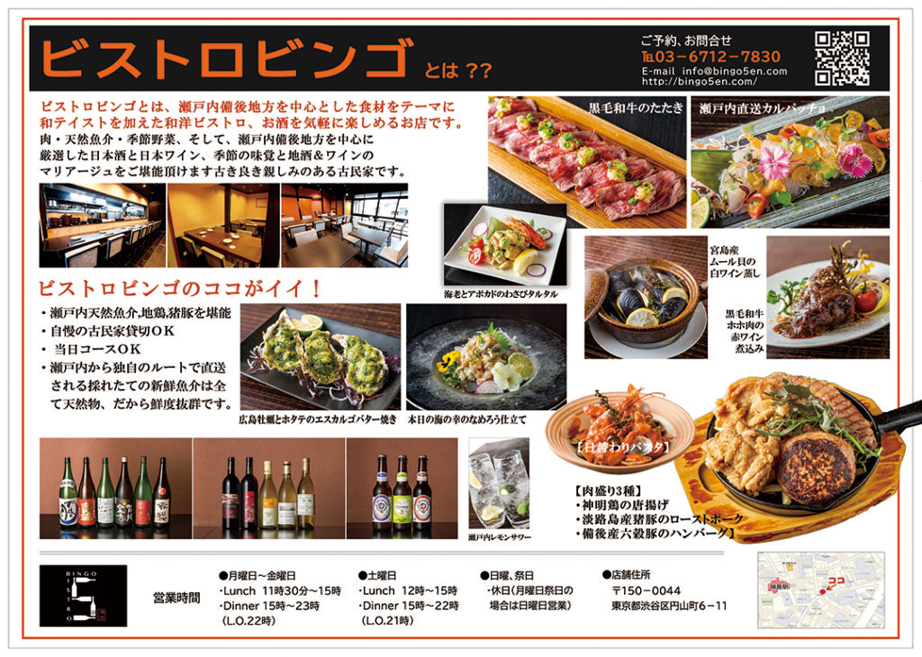 居酒屋ビストロビンゴのメニューチラシデザイン